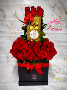 Arreglo de corazón en aproximadamente 110 rosas naturales y frutas frescas.